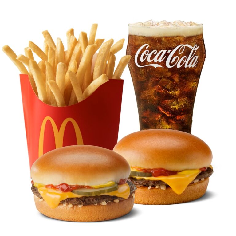 Podes elegir el menú de hamburguesa con queso, papas, gaseosa y cono helado.