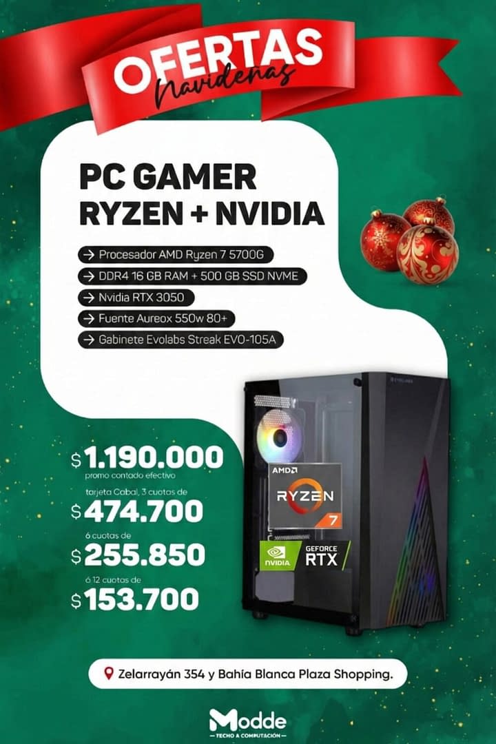 PC AMD Ryzen 7 5700g / 16gb RAM / 500gb NVME / RTX 3050 / 550w 80+ / Gabinete Evolabs Streak
