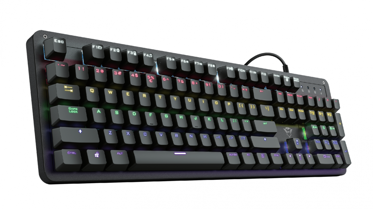 El Teclado Gamer Mecánico Trust Mazz GXT 863 RGB es la herramienta esencial para cualquier jugador que busque precisión y velocidad en sus partidas. Diseñado para ofrecer una experiencia de juego inmersiva y duradera, este teclado combina un rendimiento mecánico superior con una vibrante iluminación RGB. Prepárate para dominar cada enfrentamiento con una respuesta táctil excepcional y un estilo inigualable.